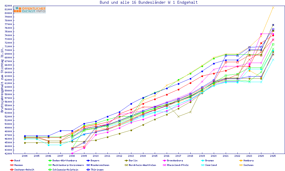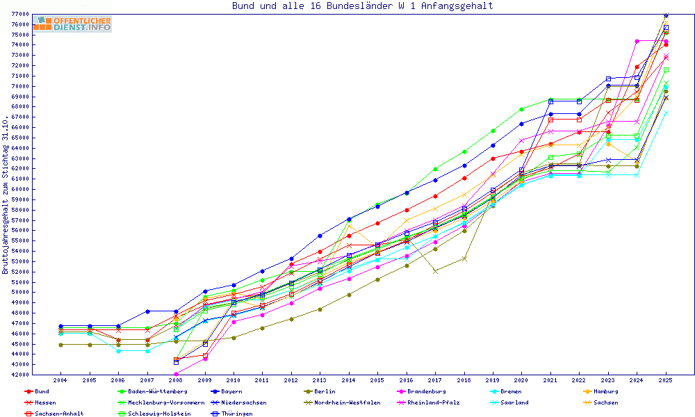 | Besoldungsvergleich W 1 im Jahr 2025 | Anfangsgehalt | ||||||