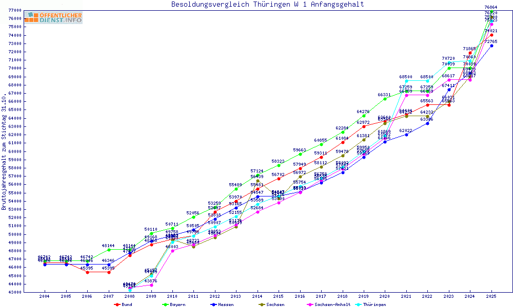 | Sachsen-Anhalt | 75.324 € | -377 € | -0.5% | +2564 € | +3.5% | ||