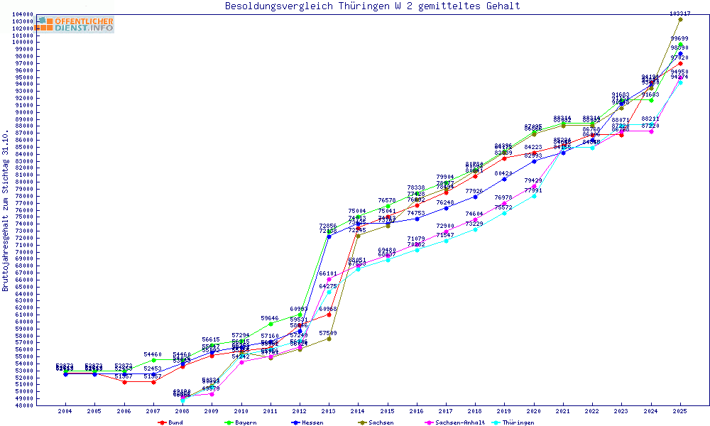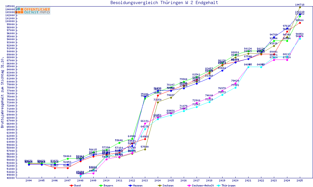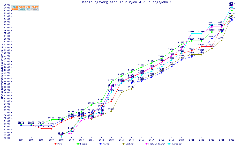 | Sachsen-Anhalt | 94.950 € | +675 € | +0.7% | +2910 € | +3.2% | |||