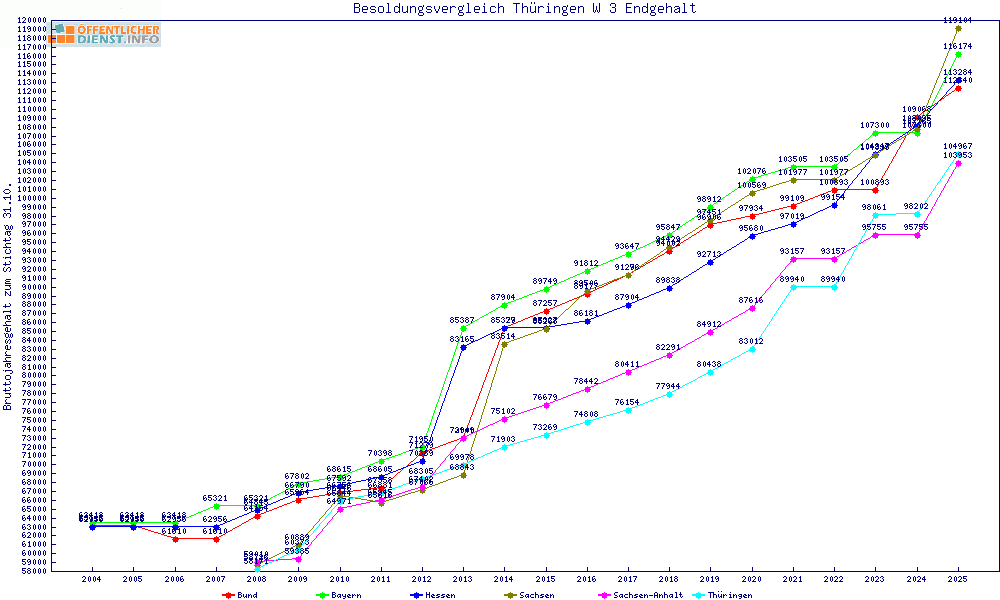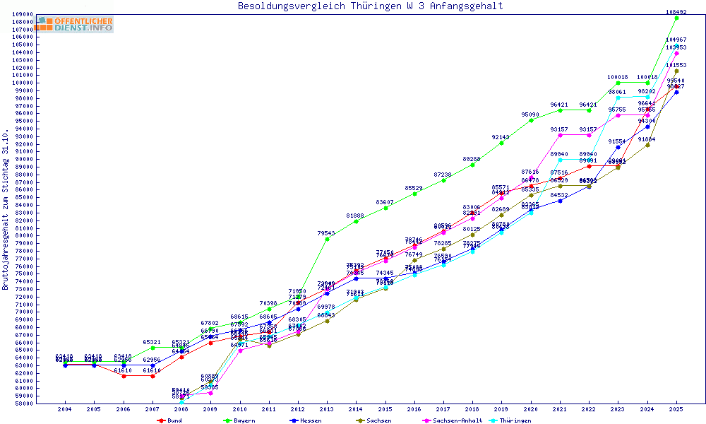 | Besoldungsvergleich W 3 im Jahr 2025 | Anfangsgehalt | ||||||