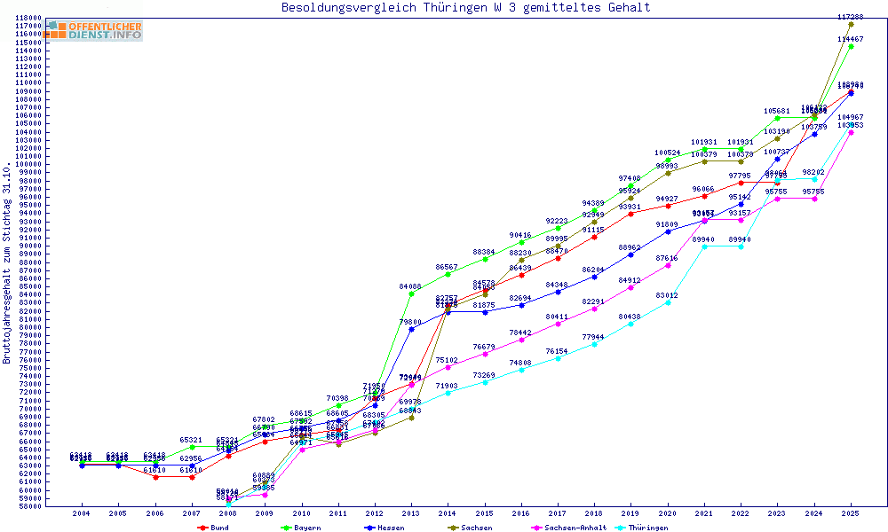 | Besoldungsvergleich W 3 im Jahr 2025 | gemitteltes Gehalt | ||||||