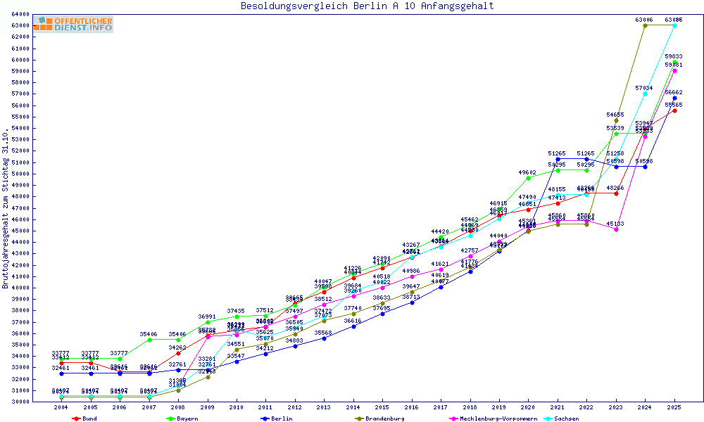 | Besoldungsvergleich A 10 im Jahr 2025 | Anfangsgehalt | ||||||