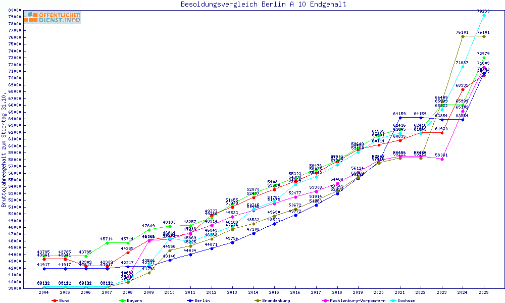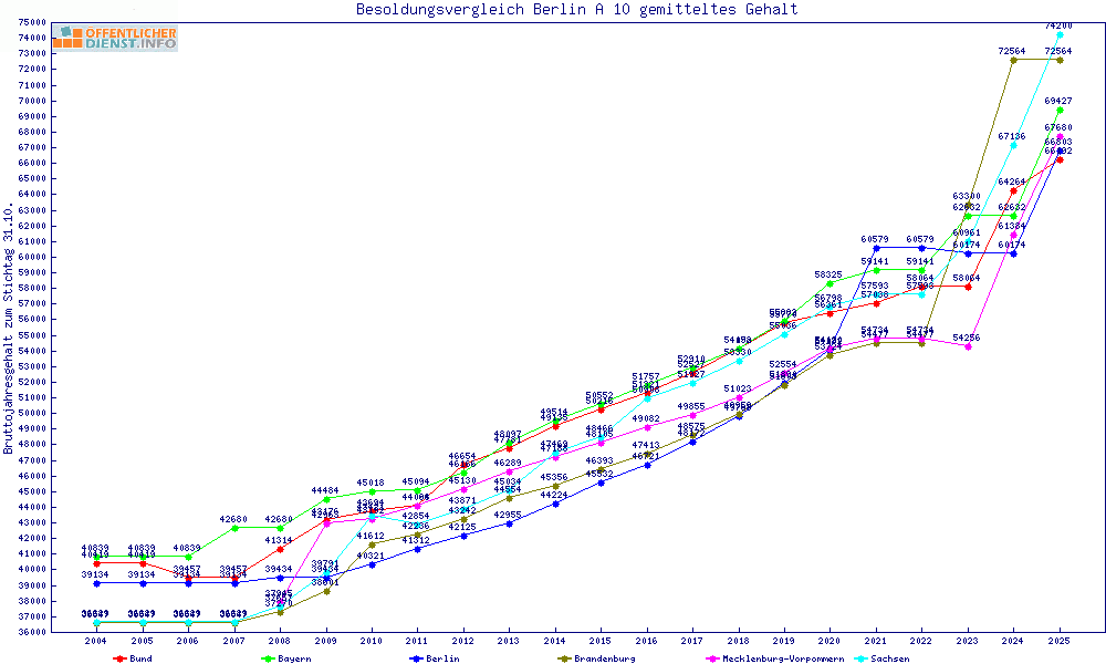 | Besoldungsvergleich A 10 im Jahr 2025 | gemitteltes Gehalt | ||||||