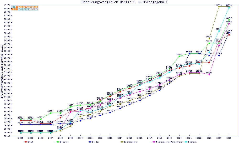 | Besoldungsvergleich A 11 im Jahr 2025 | Anfangsgehalt | ||||||