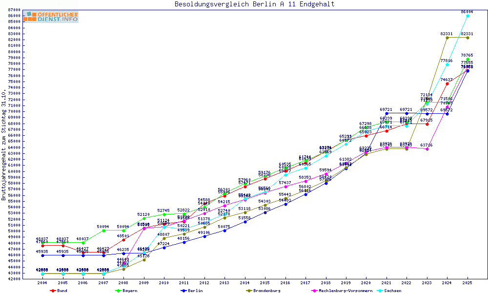 | Besoldungsvergleich A 11 im Jahr 2025 | gemitteltes Gehalt | ||||||