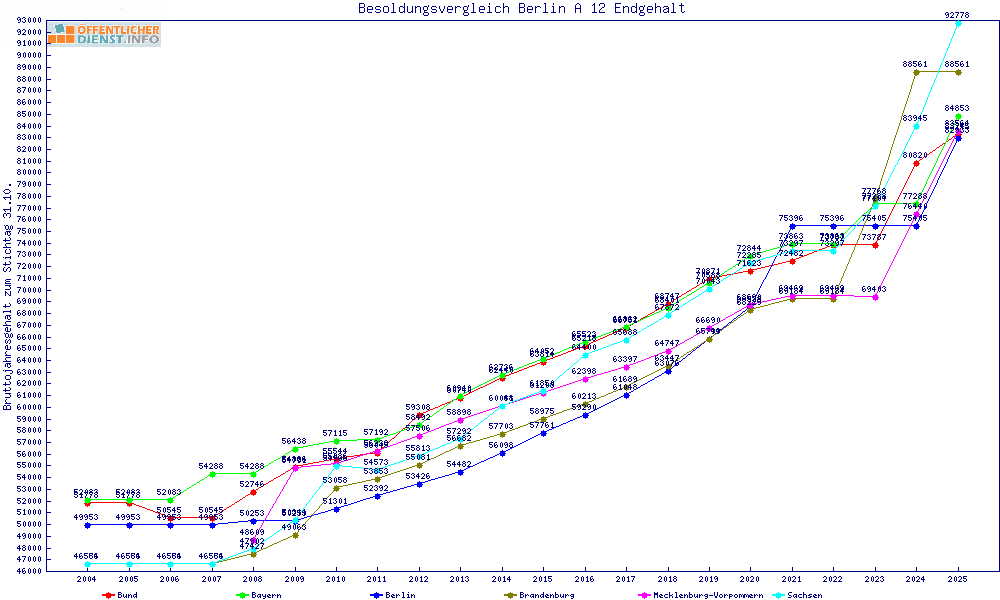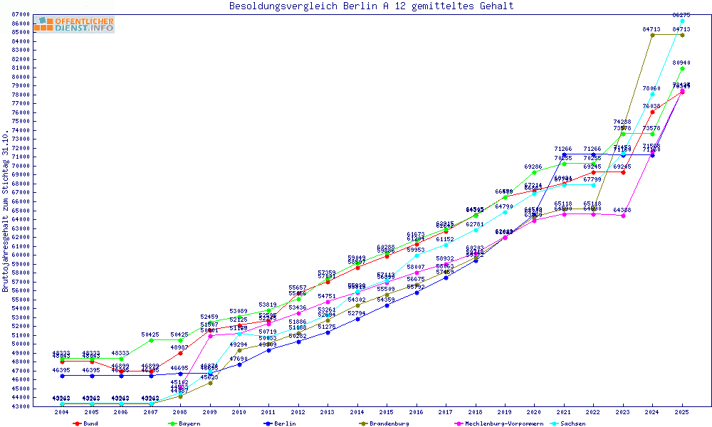 | Besoldungsvergleich A 12 im Jahr 2025 | gemitteltes Gehalt | ||||||