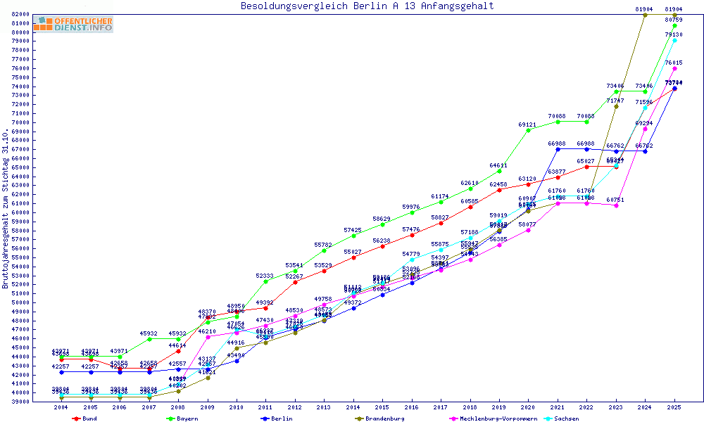 | Besoldungsvergleich A 13 im Jahr 2025 | Anfangsgehalt | ||||||