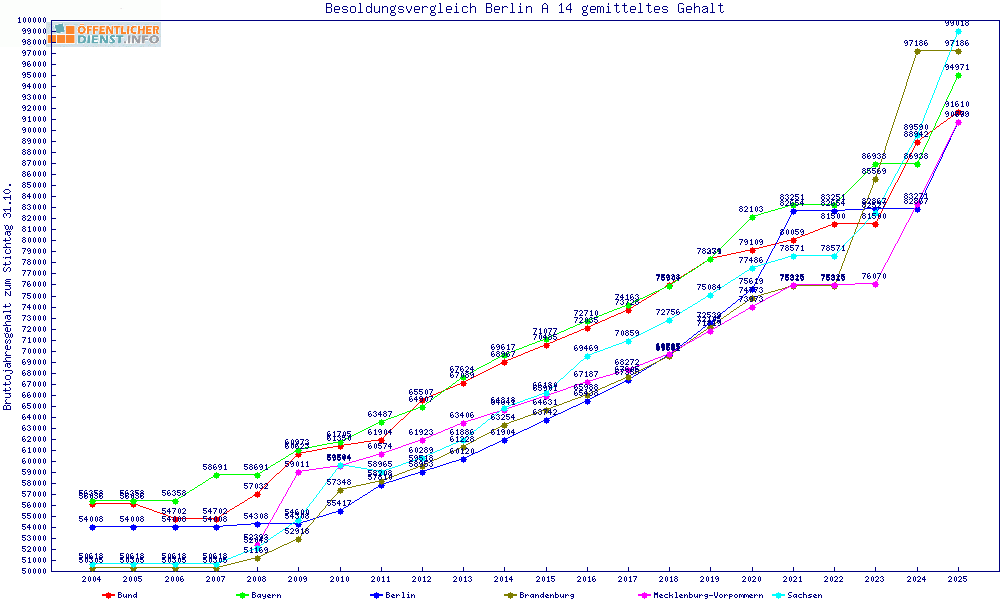 | Besoldungsvergleich A 14 im Jahr 2025 | gemitteltes Gehalt | ||||||