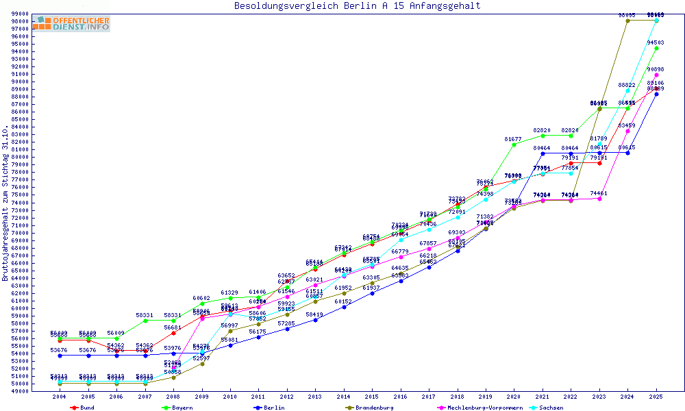 | Besoldungsvergleich A 15 im Jahr 2025 | Anfangsgehalt | ||||||