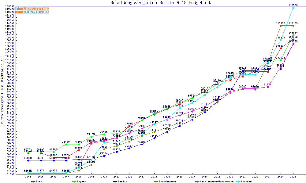 | Besoldungsvergleich A 15 im Jahr 2025 | gemitteltes Gehalt | ||||||