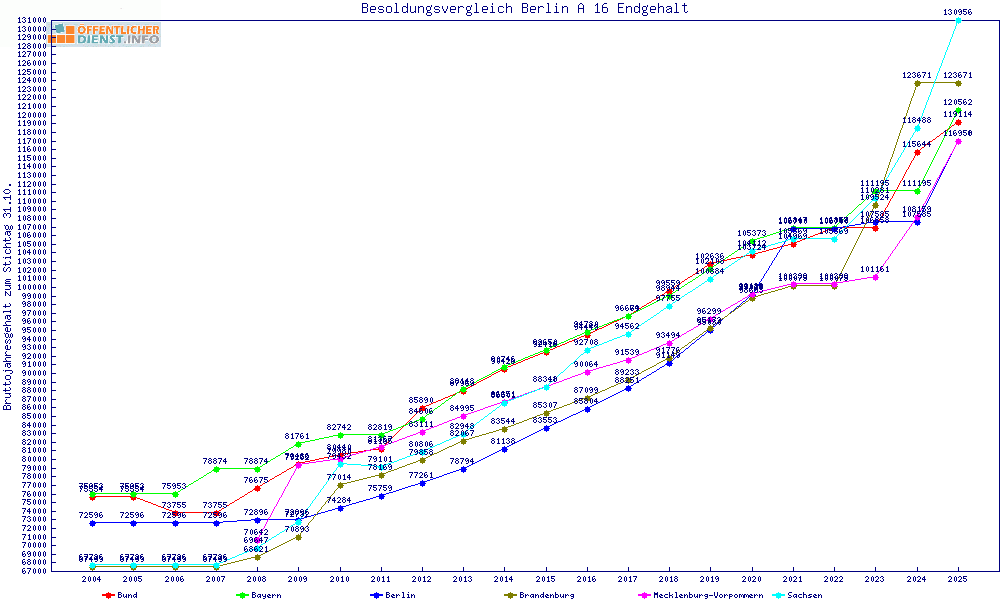 | Besoldungsvergleich A 16 im Jahr 2025 | Anfangsgehalt | ||||||