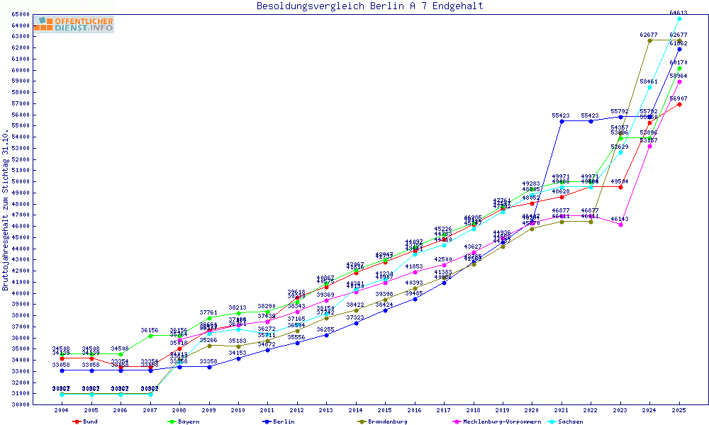 | Besoldungsvergleich A 7 im Jahr 2025 | Endgehalt | |||||||
