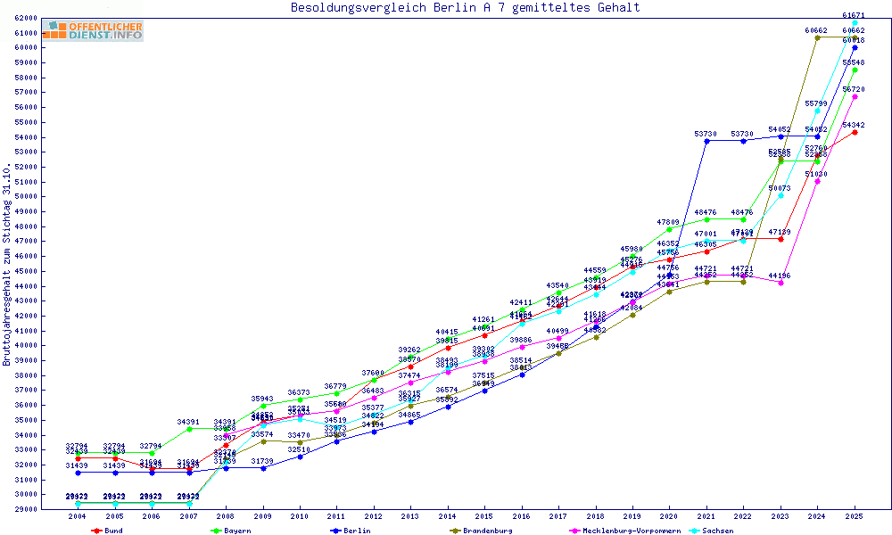 | Besoldungsvergleich A 7 im Jahr 2025 | gemitteltes Gehalt | ||||||