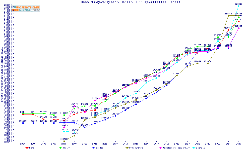 | Besoldungsvergleich B 11 im Jahr 2025 | gemitteltes Gehalt | ||||||
