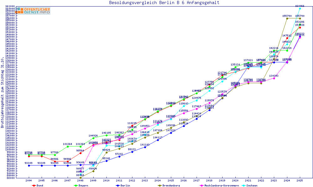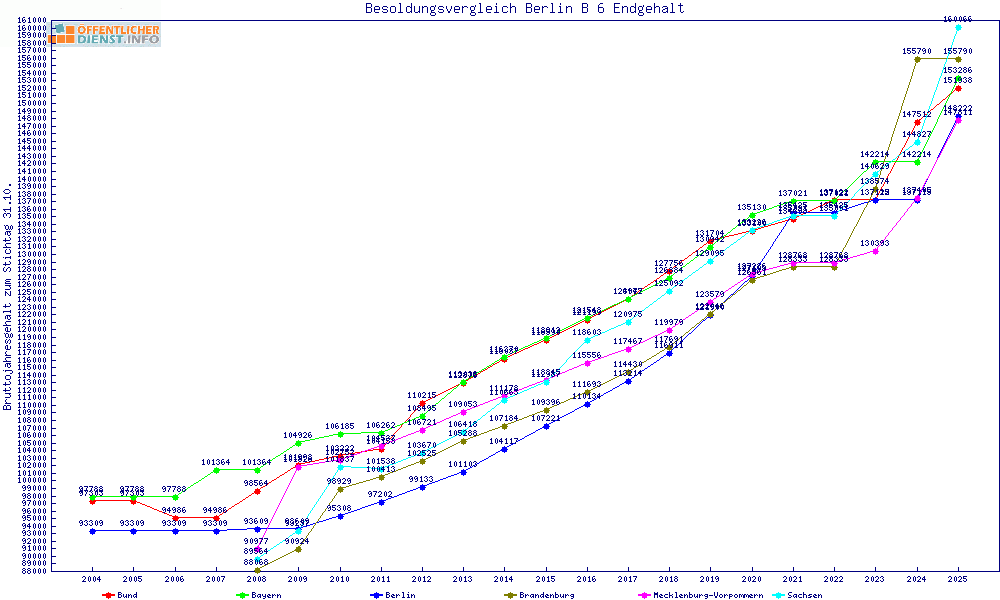 | Besoldungsvergleich B 6 im Jahr 2025 | gemitteltes Gehalt | ||||||