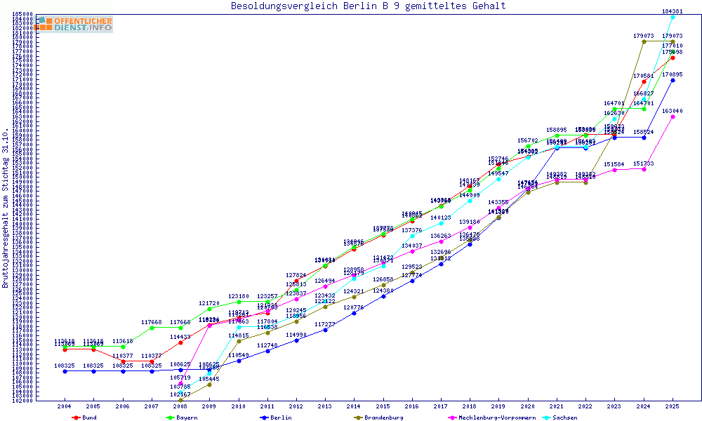 | Besoldungsvergleich B 9 im Jahr 2025 | gemitteltes Gehalt | ||||||