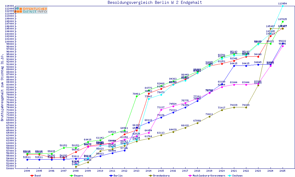 | Sachsen | 113.955 € | +14732 € | +14.8% | +13116 € | +13.0% | 6 Jahre | ||