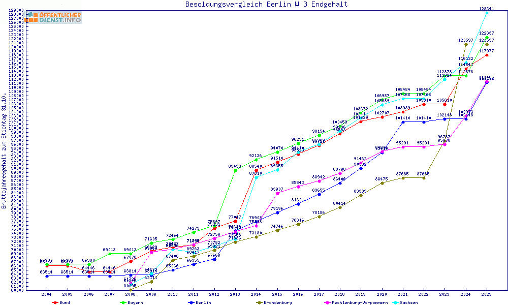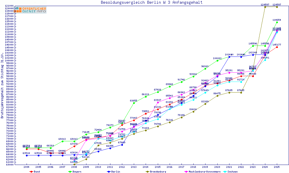 | Besoldungsvergleich W 3 im Jahr 2025 | Anfangsgehalt | ||||||