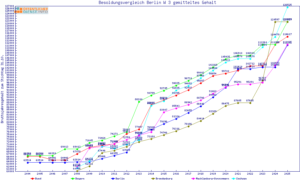 | Besoldungsvergleich W 3 im Jahr 2025 | gemitteltes Gehalt | ||||||