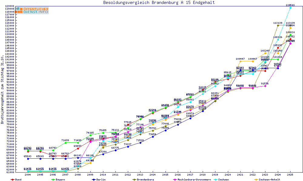 | Besoldungsvergleich A 15 im Jahr 2025 | gemitteltes Gehalt | ||||||