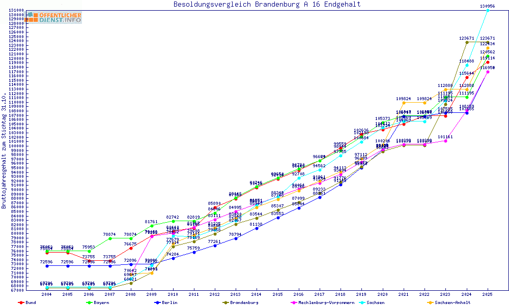 | Besoldungsvergleich A 16 im Jahr 2025 | Anfangsgehalt | ||||||
