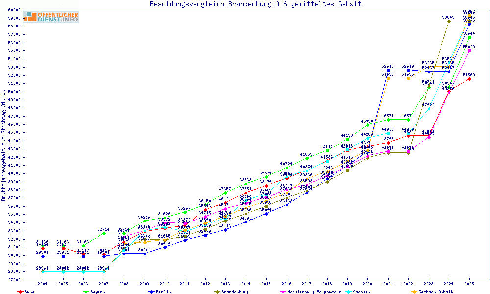 | Brandenburg | 60.596 € | +2717 € | +4.7% | 22 Jahre | ||||
