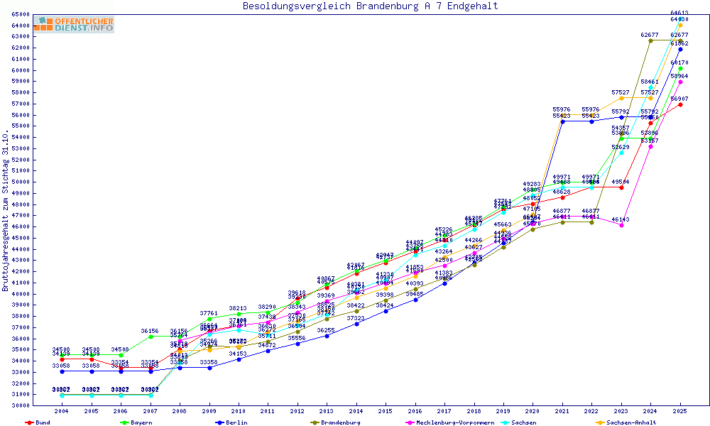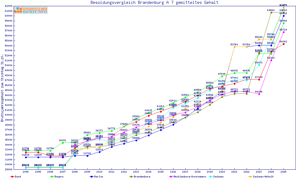 | Brandenburg | 62.678 € | +1985 € | +3.3% | 22 Jahre | ||||