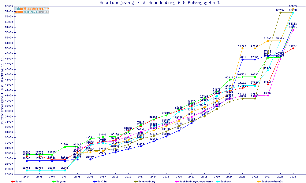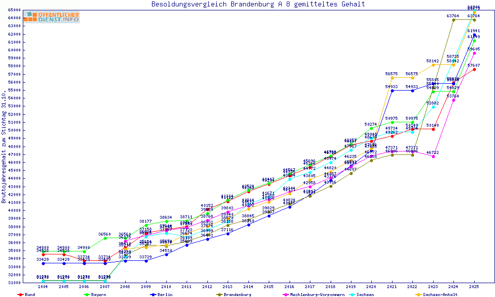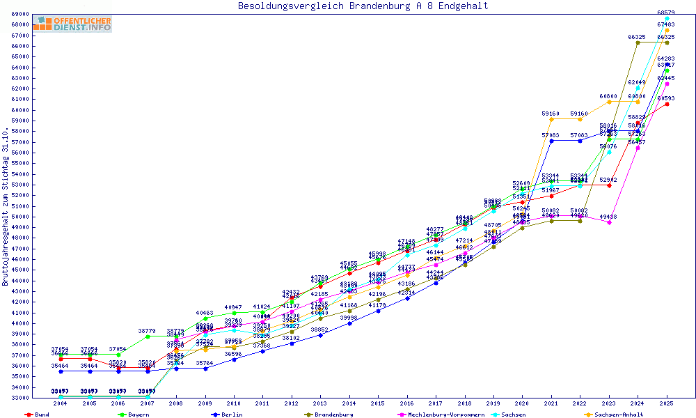 | Brandenburg | 66.325 € | +2168 € | +3.4% | 24 Jahre | ||||