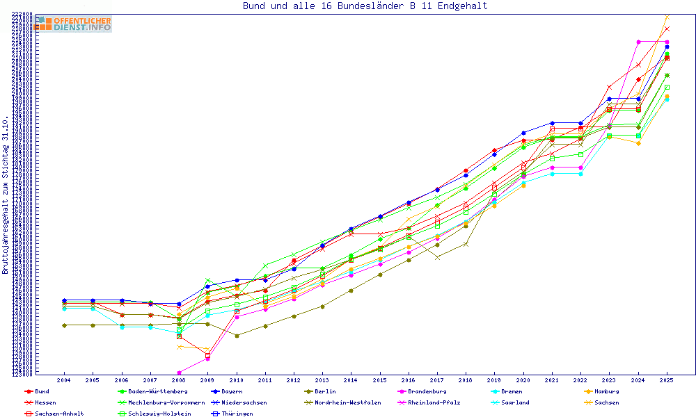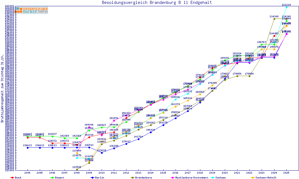 | Besoldungsvergleich B 11 im Jahr 2025 | Anfangsgehalt | ||||||
