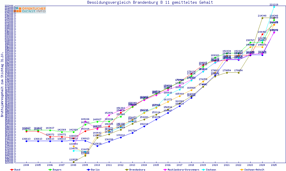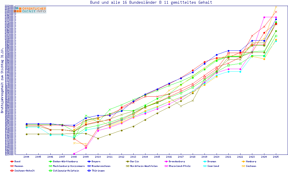| Besoldungsvergleich B 11 im Jahr 2025 | gemitteltes Gehalt | ||||||