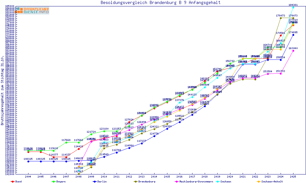 | Besoldungsvergleich B 9 im Jahr 2025 | Anfangsgehalt | ||||||