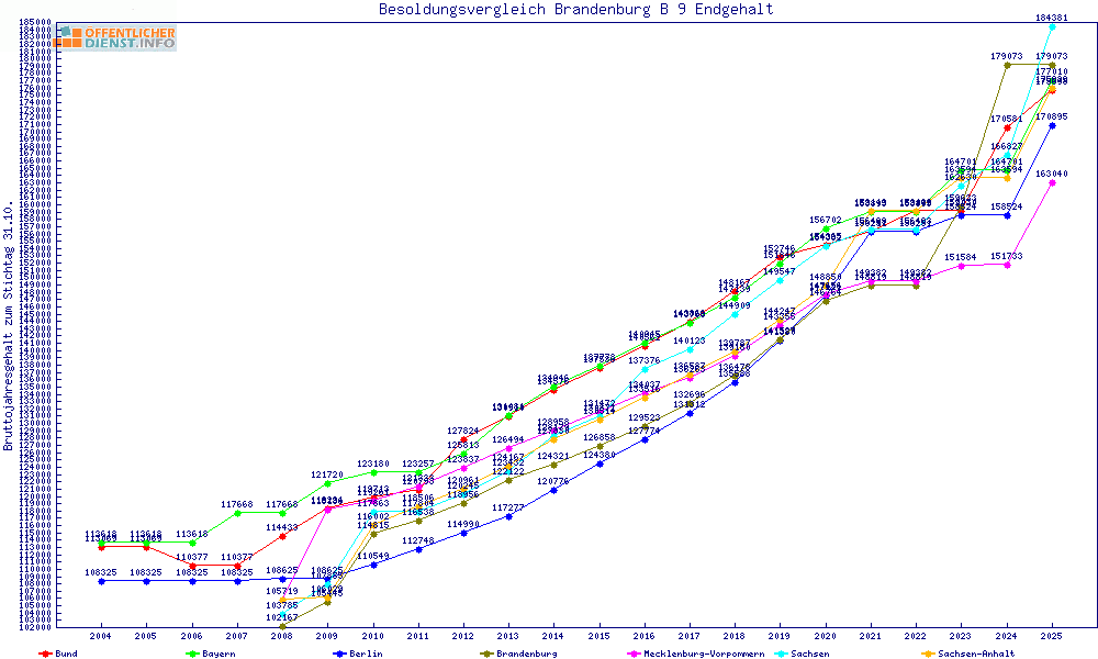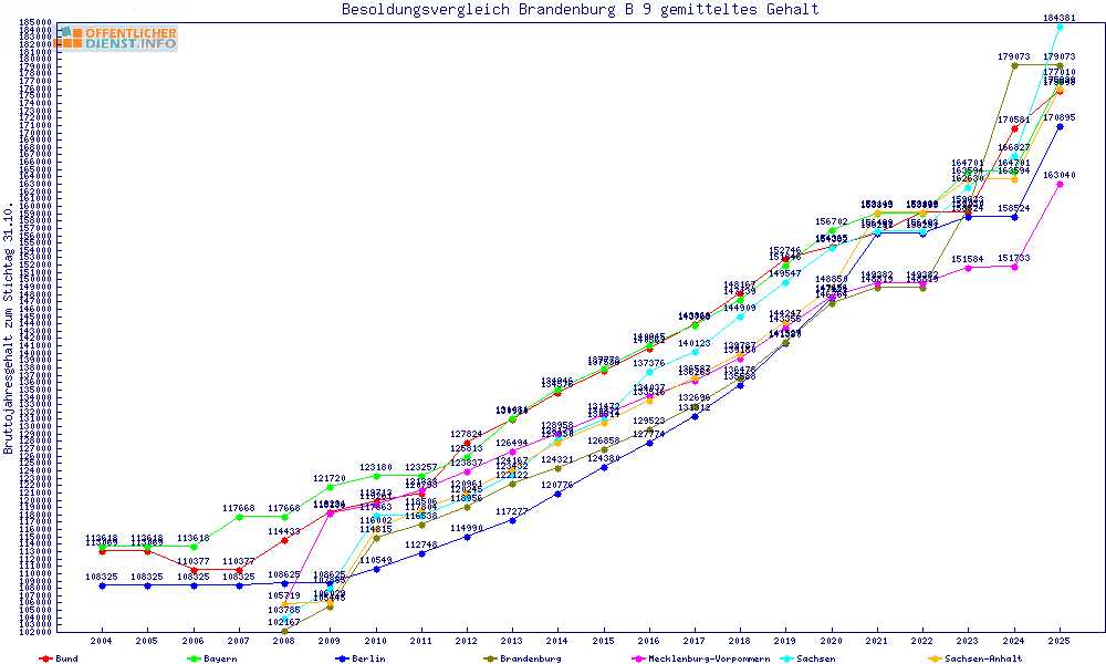 | Besoldungsvergleich B 9 im Jahr 2025 | gemitteltes Gehalt | ||||||