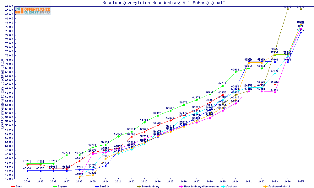 | Besoldungsvergleich R 1 im Jahr 2025 | Anfangsgehalt | ||||||