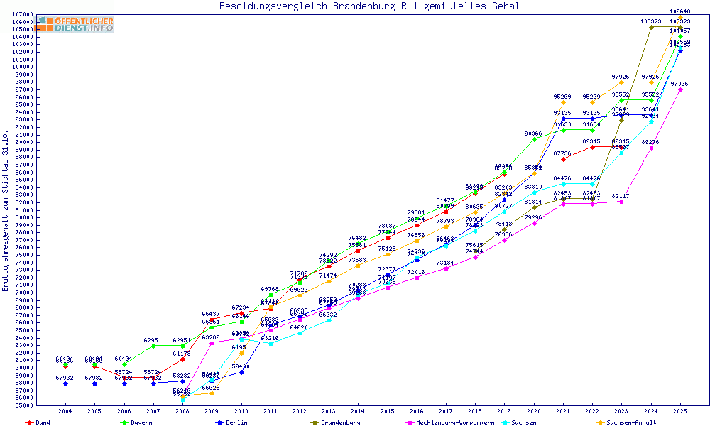 graphischer Besoldungsvergleich gemitteltes Gehalt aller Bundesländer