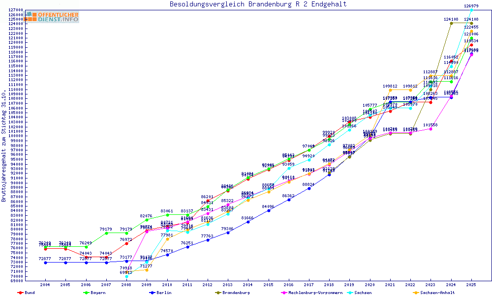 | Brandenburg | 124.108 € | +4540 € | +3.8% | 22 Jahre | ||||