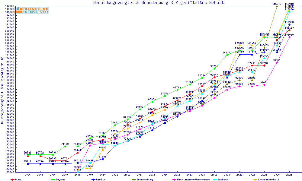 | Besoldungsvergleich R 2 im Jahr 2025 | gemitteltes Gehalt | ||||||