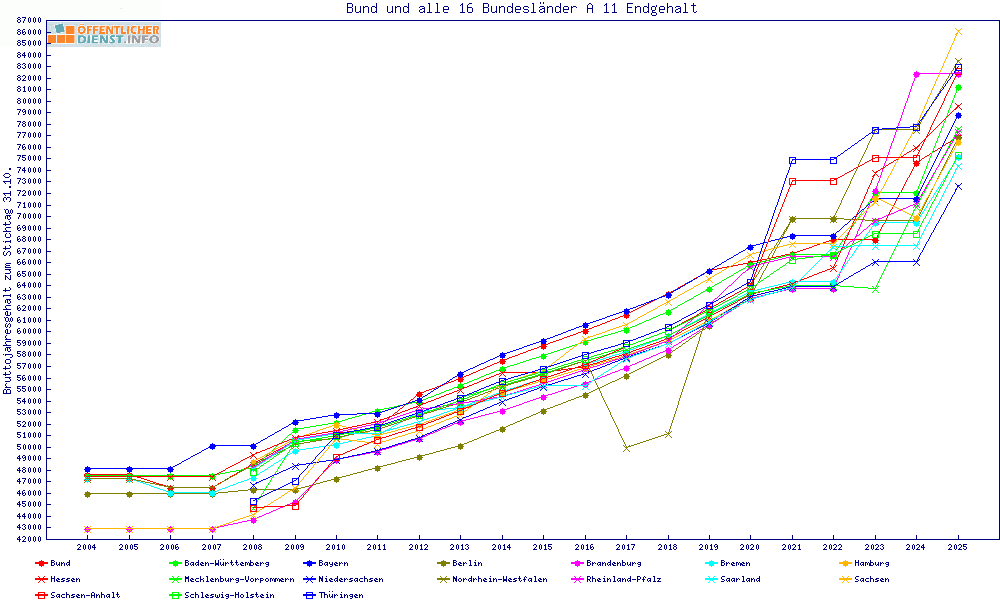 | Besoldungsvergleich A 11 im Jahr 2025 | Endgehalt | |||||||