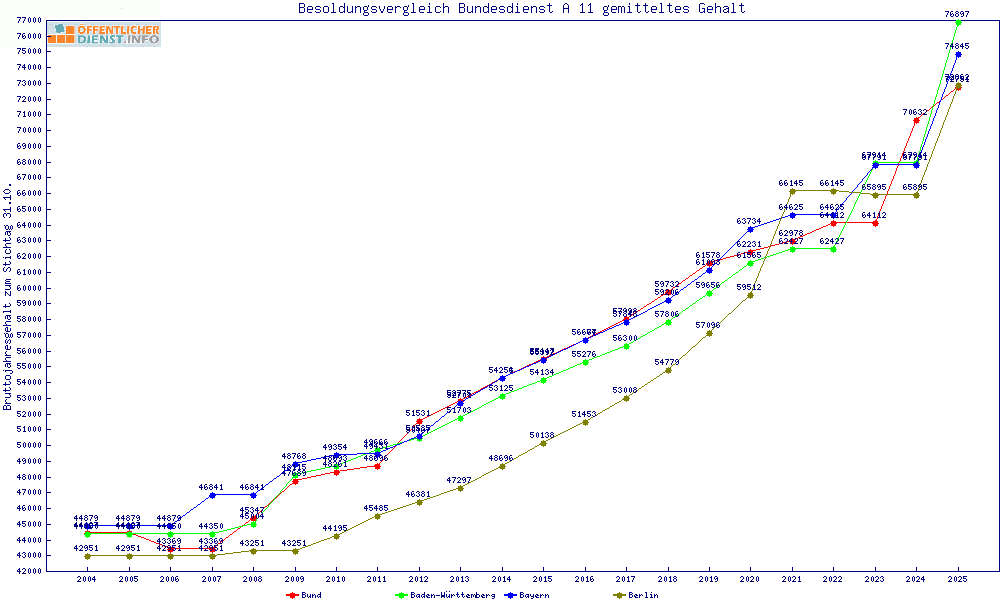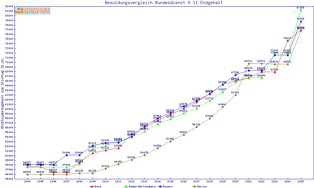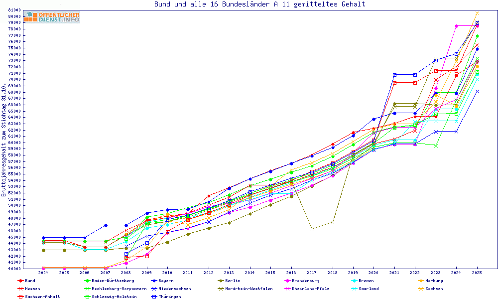 | Besoldungsvergleich A 11 im Jahr 2025 | gemitteltes Gehalt | ||||||