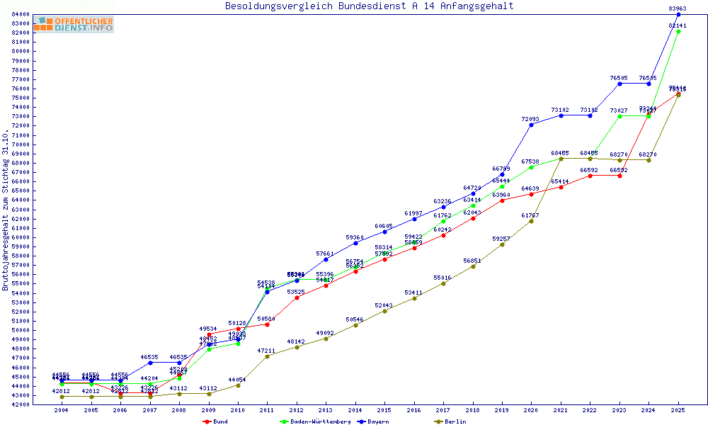 | Besoldungsvergleich A 14 im Jahr 2025 | Anfangsgehalt | ||||||