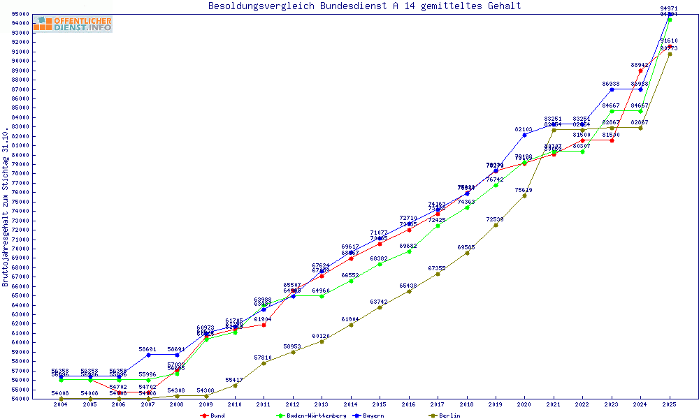 | Besoldungsvergleich A 14 im Jahr 2025 | gemitteltes Gehalt | ||||||