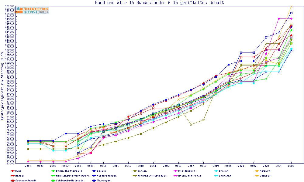 | Besoldungsvergleich A 16 im Jahr 2025 | gemitteltes Gehalt | ||||||