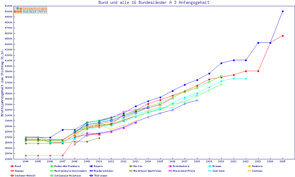 graphischer Besoldungsvergleich Anfangsgehalt aller Bundesländer