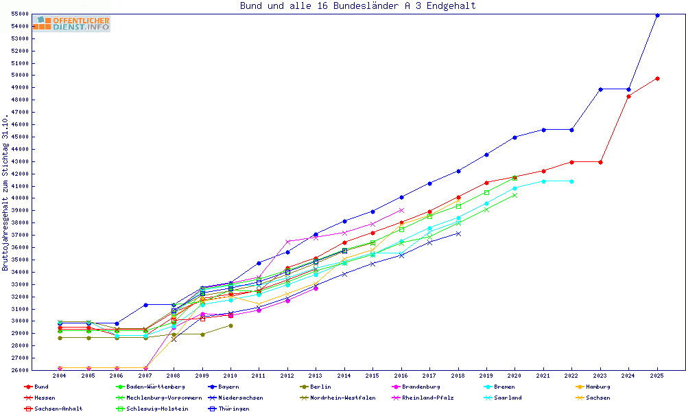 | Bayern | 54.868 € | +5133 € | +10.3% | +2566 € | +4.9% | 20 Jahre | ||