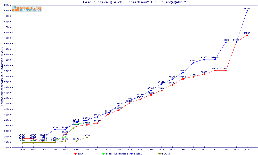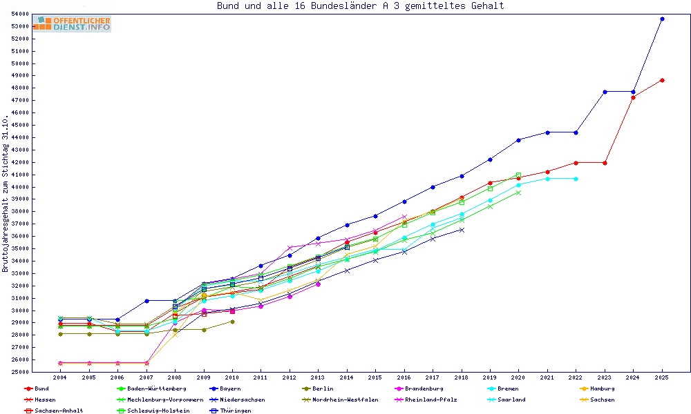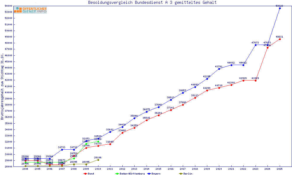 | Besoldungsvergleich A 3 im Jahr 2025 | gemitteltes Gehalt | ||||||