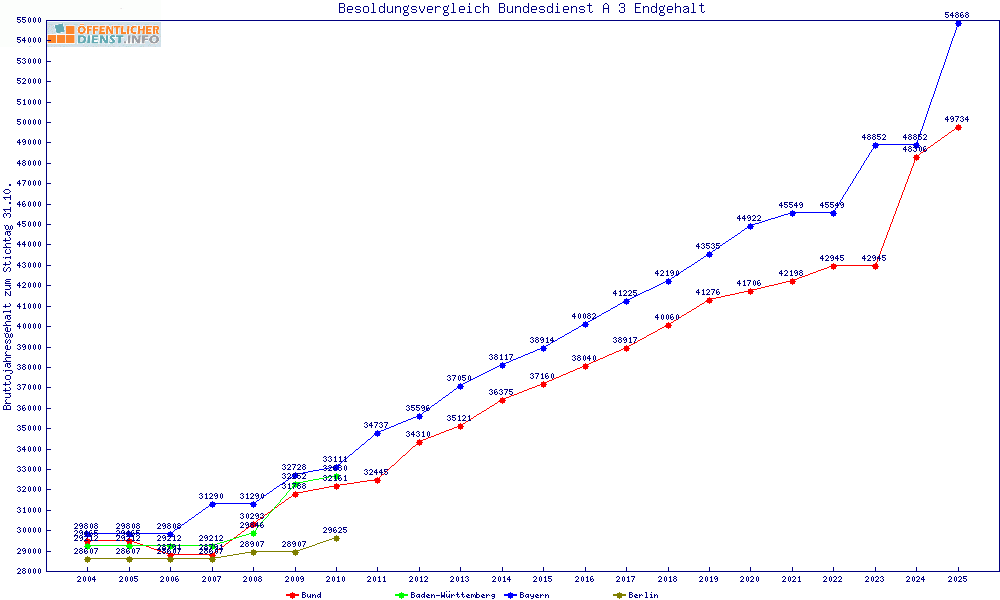 | Besoldungsvergleich A 3 im Jahr 2025 | Endgehalt | |||||||