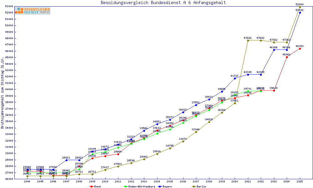 | Besoldungsvergleich A 6 im Jahr 2025 | Anfangsgehalt | ||||||