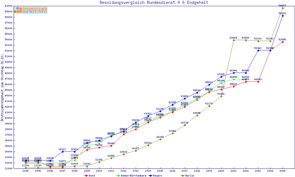 | Besoldungsvergleich A 6 im Jahr 2025 | Endgehalt | |||||||