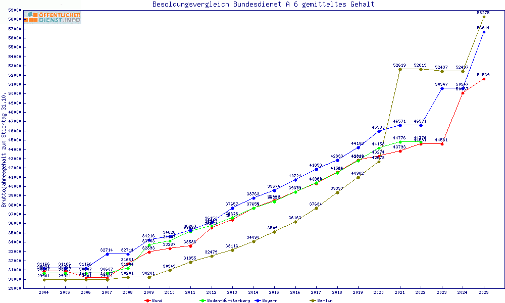 | Besoldungsvergleich A 6 im Jahr 2025 | gemitteltes Gehalt | ||||||