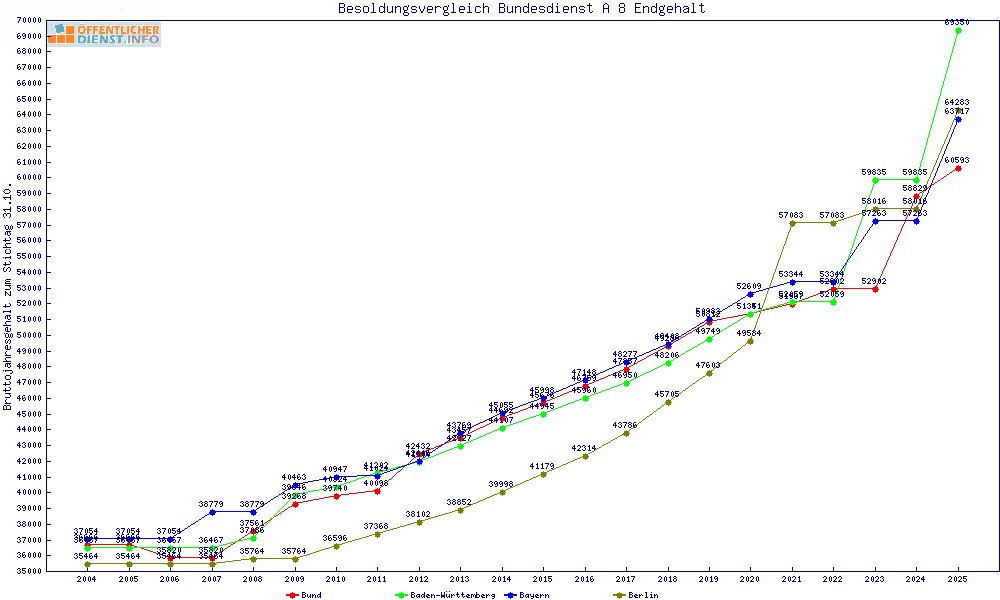 | Besoldungsvergleich A 8 im Jahr 2025 | Endgehalt | |||||||