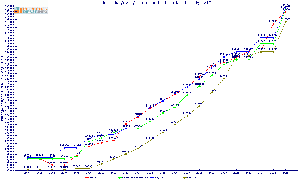 | Besoldungsvergleich B 6 im Jahr 2025 | Endgehalt | |||||||